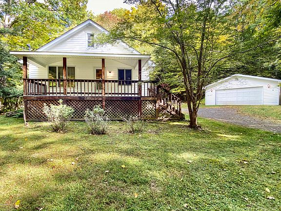 Cozy Ranch style Cabin in the woods! On just under 4 acres with no community in the beautiful Twin Lakes Road area of Shohola you will find this 2 bed, 1 bath cabin with detached garage. Close proximity to the village of Shohola, Milford, Delaware River, Hawks Nest, and more. Enjoy your morning coffee on the oversized, covered front porch, explore nature on your 4 private acres, and set up the garage for all your hobbies. Harwood floors underneath the carpets and the unfinished attic space are ready to be finished with your personal touches.