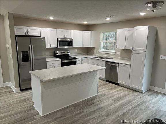 Welcome to your brand new home in Small Town, USA. Get the best of both worlds--be away from the busyness of the big city, yet conveniently located in town near its small-town offerings. This spacious, brand new home displays an open concept floor plan with a vaulted living room ceiling and a split floor plan. The kitchen includes brand new, stainless steel appliances, many cabinets including a pantry (cabinet), and an island doubling as a breakfast bar. The walls are painted in a neutral color and the same luxury vinyl plank flooring is found throughout the entire home, giving a light and airy feel. The main bedroom features a walk-in closet and his/her vanities. And on the outside, sip your coffee on the covered front porch or the back concrete patio with a wooded tree line. Schedule your showing today!