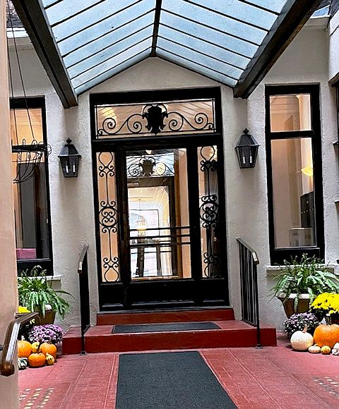 Small backyard gardenPlenty of natural lightHigh ceilingsQuiet tree-lined streetElegant entranceBrick wallWooden bookshelf