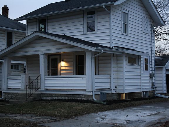 Great two story home for first time home owner or investor. Brand new furnance and central air. 2 bedroom 1 bath home . Fresh paint, new kitchen cabinets and counter tops. New flooring through out. Large covered front and back porch. Clean and dry basement. Fresh landscaping, 1 car detached garage.