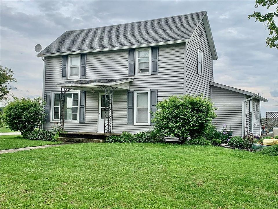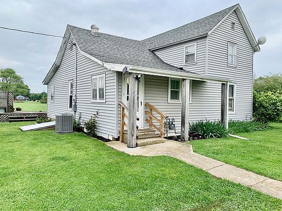 Live in a little bit of Cowden history! This farmhouse built in 1875 offers 3br, 1ba. on a huge .73 acre lot on the edge of town, just a short walk from Cowden-Herrick Sr. and Jr. High. Upgrades over the years include new vinyl siding in 2005, new furnace and central air installed (2016), new roof on east side (2015), new insulation in the cellar and basement (2016), and new pool pump and septic tank aerator (2021). Lots of flowers included in the landscape with a 24' above-ground pool, with a deck from the back door to the water. Newly rocked drive lends itself to easy drive up to kitchen entry, with a detached garage doubling as extra storage. There is also a cellar for storage with a deep freeze remaining with the property. Inside you'll find a cozy kitchen with appliances, dining room, living room, one bedroom and bath all on the main level. Upstairs are two additional bedrooms (or bedroom and an office). There is so much potential here. Home to be sold as is, come take a look!