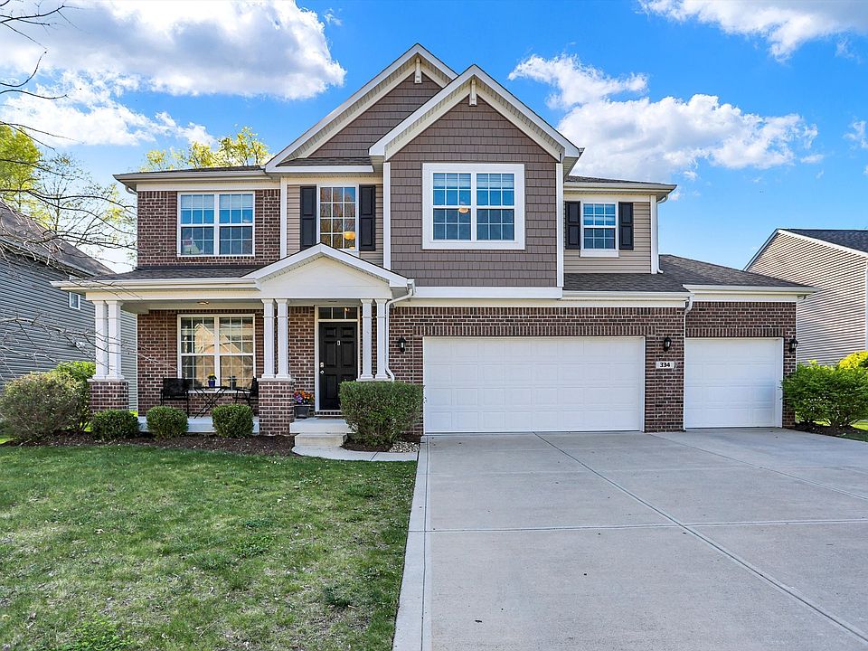 This stunning 4 bedroom 2.5 bath with a basement is located in Center Grove. Floorplan is the perfect blend of sophistication and functionality making it the ideal family home. Office/den is located on the main and opens with french doors. A gourmet Kitchen with elegant cabinetry, double oven, granite counter tops, spacious island and a pantry will take dinner prep from a chore to a score! Each bedroom boast walk in closets for plenty of space. Primary bedroom has a walk in glass enclosed shower with double vanities. New carpeting throughout. Outside you will find a backyard deck perfect for family gatherings or sipping coffee and an irrigation system for added convenience. This one owner home was built in 2016 in Harrison Crossing and the home is a must see!