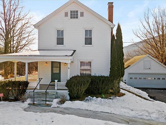 Just a stroll away from the Bennington Battle Monument sits this 4BR/2BA home which is delightful in every way. Stunning views of the monument as well as Mount Anthony, you could not ask for a lovelier location! Light and bright with an abundance of windows on a 5+ acre lot, you'll feel proud to call this property "Home". An impressive marble walkway leads you to the front porch for perfect curb appeal. Beautiful wood floors, built-ins and a cozy woodstove welcome you into the oversized living room. The back of the house features a large kitchen which opens to a generous deck for summer dining and entertaining. There's also a wonderful screened in porch off the kitchen which overlooks a small koi pond. Front and back staircases lead to the upstairs bedrooms. An ideal layout for making a primary suite area or office space for privacy. Beautiful landscaping and grounds with an attached 2 car garage. Enjoy the proximity to downtown shops and restaurants as well as historic Old Bennington. Truly a bucolic Vermont property!
