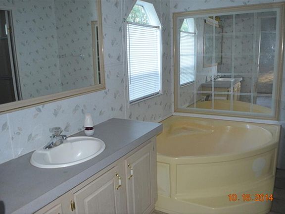 This large mobile has tons on potential! An oversized home this property has 2 open decks directly off of each side of the kitchen, a master bedroom that is large enough to fit most any furniture and a master bathroom with garden tub, walk in closets, separate shower and a his and her separate commodes. A split bedroom design, the remaining 3 bedroom are on the opposite end of the home. Bedrooms 1 and 2 share a second bathroom, and there is a 3 bathroom for guests. Living room has a fireplace and is large and open. As well there is a a family room with<br>fireplace as well. Home needs some TLC but could certainly make a great home or rental for investor.