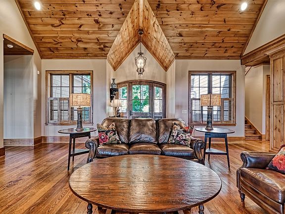 Upstairs, two guest bedrooms with ensuite baths and a living room between the suites. Lower level guest room with ensuite bath and a fun bunk room. Family room with a flooorstone fireplace and private office. The garage, with golf cart storage and a workroom offers a mini-split system for heating or cooling. Partial generator. Antique oak hardwood floors on all three levels warm the homes living spaces. This extraordinary residence offers an unparalleled lifestyle. Don't miss the chance to make the stunning home your forever home.
