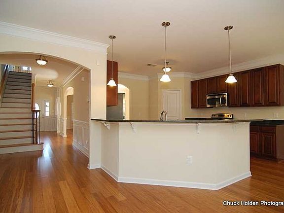 - Kitchen: Bar, Cabinets-Wood-Stained, Counter Tops-Granite, Eat In, Hardwood Floor, Pantry, Bay Window