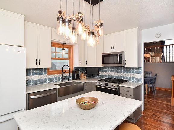 Meticulously maintained single owner home in Coon Rapids. The main level boasts a newly remodeled kitchen and beautiful hardwood floors in 2019. The lower level has a cozy fireplace in a large family room. There is tons of storage and utility room in the basement. Outside, a large lot with inground sprinklers, pergola, firepit, and incredible landscaping perfect for relaxing or entertaining. Large 13 x 20 deck and 14 x 22 patio as well. Backyard shed is on a concrete slab with electric. New siding, sidewalk, and aprons in 2019 and driveway sealed in 2022. Oversized garage -
