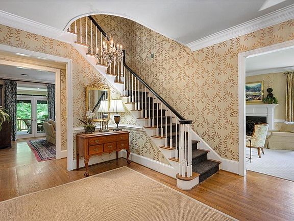 Classic, brick 5-bedroom family home located in the heart of Country Club Hills on a large lot in a park-like setting. Attractive covered entrance leads to large foyer which is flanked by equally large dining and living rooms. Wide openings lead to a family room and a multifunctional, well-appointed kitchen. 10 ft. ceilings, gorgeous hard woods, custom finishes and high-end features enhance this home. At the rear, a deep, covered porch connects the main floor to the outside with space for dining, gathering and enjoying a raised-hearth fireplace. A private bedroom with full bath completes this level. Upstairs are 4 bedrooms and 3 baths, with a bonus room on the third floor. Downstairs, the basement contains an oversized 2-car garage and ample room for storage as well as a surprising recreation area for kids and grown-ups alike.