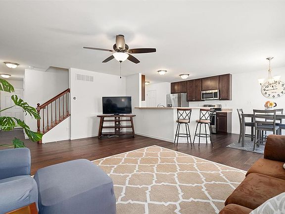 Wonderful opportunity in the Charlestowne Crossing neighborhood. This 2 story home, just 7 years old is ready for you to move right in! Beautiful wood floors welcome you into this home with an open floor plan - a spacious living room that flows into the dining area which leads to a patio and the rear yard. A large kitchen with breakfast bar and pantry is perfect for all levels of cooking. Upstairs you'll find an amazing primary suite with an upgraded bathroom and 2 large walk in closets. In addition there are 2 more bedrooms, both with walk in closets and a full bath. Other features include a 1/2 bath on the main level, 2nd floor laundry room, and an unfinished lower level with bath rough in and egress window.