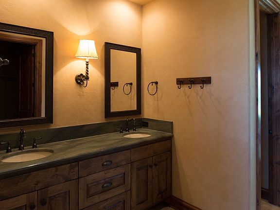 Start living the Boot Ranch life now w/this move-in-ready luxury ranch-style home on 5 private ac. The open great room includes a stone fireplace,massive ceiling beams,& dining area.The beautifully appointed kitchen features a huge semi-circular bar w/exotic granite,built in refrigerator,gas cooktop & wall oven w/warming drawer. Spacious master suite fire place & luxurious bathroom.Two large bedroom suites upstairs.Detached guest house features bedroom w/fireplace & well appointed bathroom.You will love the free-form pool & spa surrounded by stone terrace & covered porch w/outdoor kitchen.
