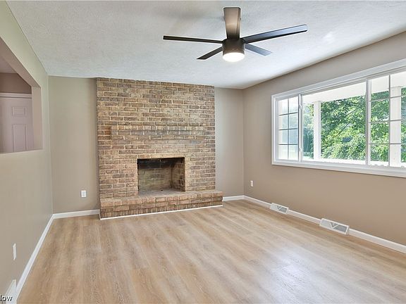 Masterfully remodeled and move-in-ready, this stunning Newton Falls residence won’t be around for long! Quickly delighting with its desirable open central layout, the engaging design will have you quickly falling in love. The three-bedroom ranch sits at the end of a concrete drive as a second, oversized detached garage makes for easy vehicle or equipment storage alike. A prominent, covered front patio leads past elegant brick work as you step inside. The immediate family room finds a brick fireplace alight in the midday sun from the picture window. A second serving window peers into the kitchen, bringing the natural light into your cook space. Daring, dark stained cabinets accent the bright stainless appliances and sweeping granite countertops as recessed lighting shines from above. The substantial dining area oversees the rear great room, showcasing a second fireplace, tall ceilings and arch topped windows. Down a short hall, a striking full bath includes a lavish corner shower. Nearb