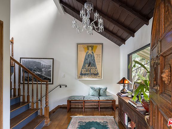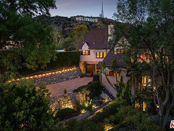 Peacefully tucked amidst the treetops of Beachwood Canyon, this fully furnished 1920s French Normandy chateau is a luxurious retreat where Old Hollywood charm meets modern sophistication! With breathtaking views of the Hollywood Sign, Griffith Observatory, and the iconic Los Angeles skyline, this secluded oasis offers an unparalleled experience in the Hollywood Hills. Step through the arched entryway and be transported to a world of eleganceexquisite walnut millwork, soaring truss ceilings, and abundant windows bathe the home in natural light. Cathedral ceilings tower over the living room's stone fireplace and scenic French doors, opening to a picturesque deck that set the stage for unforgettable evenings under the stars. A designer chandelier lends a relaxing mood for intimate gatherings in the dining area. Crafted for the avid cook, the gorgeous kitchen features premium appliances, custom cabinetry, a distinctive backsplash, and gleaming marble countertops. Three generous bedrooms invite you to unwind after a long day, the grandest of which is the primary suite with its exclusive balcony, walk-in closet, and opulent ensuite. Multi-level outdoor seating areas, a covered fitness alcove, and lush greenery make this home an entertainer's dream. Notables include the versatile loft with a separate entry, kitchenette, and a long, gated driveway offering ample parking. Its elevated location makes this sanctuary feel remote despite being only moments from the heart of LA. House is offered fully furnished and available for rent 1/8/2026