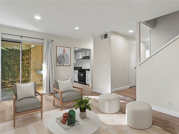 This beautifully updated three-bedroom / two and a half bathroom townhome combines stylish comfort with tranquility and privacy. Recent upgrades include waterproof laminate flooring in a warm golden oak finish, fresh paint throughout, and renovated bathrooms featuring new vanities, fixtures, tile floors, with a new tub and showers. The kitchen boasts a modern, open concept design with a gas range and a spacious dining area that opens to the front patio. The family room, warmed by a gas fireplace and mantel, also has access to a private back patio surrounded by mature trees for added seclusion. The fully enclosed front patio is perfect for your furry friend or afternoon BBQs, complemented by newly landscaped succulent accents. Parking is extremely convenient with a one-car garage and adjacent carport. The main level features a generous laundry room (washer and dryer included) as well as a powder room for guests. The primary bedroom has vaulted ceilings and a newly updated ensuite bathroom, while two additional bedrooms complete the space. As part of the well-maintained Arroyo Santiago community, residents enjoy an array of amenities including a pool, jacuzzi, lush mature landscaping, and meandering walking paths throughout. 3340 East Collins is an ideal place to call home!