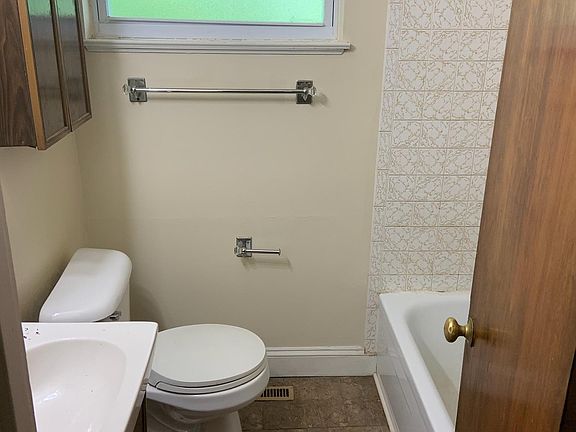 This property has 4 bedrooms (2 up, 2 down) with 1 full bath and a huge unfinished basement with washer/dryer hookup. It has brand new flooring, fresh paint, updated kitchen and bath fixtures (not pictured) and a huge partially fenced in backyard (approximately 1/4 acre). Available immediately. Please, no calls. Tenant pays all utilities