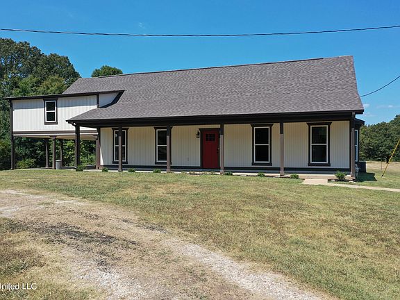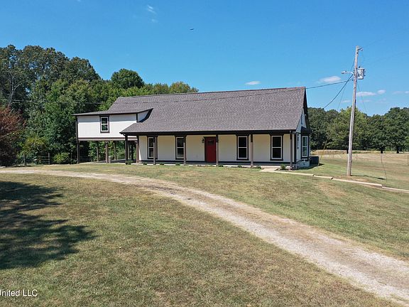2,100 sf 4 bedroom, 3 bath home sitting on 16 acres or land between Holly Springs and Red Banks on Hernando Road. The home has been completely renovated with new roof, interior and exterior paint, flooring, granite countertops and all fixtures. Two bedrooms and 2 full bathrooms located downstairs and 2 bedrooms and one bathroom located upstairs. Large great room with gas fireplace. Kitchen with view of the great room, breakfast bar and eat in area. Large unfinished expandable area on second floor above carport. On the exterior of the home you will find a 2 car carport, large covered front porch and rear patio and a 960 sf detached workshop w/two roll up doors and additional covered parking. Property is connected to city water. Beautiful acreage with a nice pond perfect for horses, hunting or recreational use.