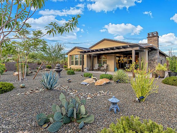 Beautifully appointed Nice floor plan w/new roof! Large Sliding Glass door in Great Room leading to open back yard with Custom Pergola and fireplace. Kitchen has stunning granite counters, SS appliances and large center island. Primary suite with upgraded tile shower, split vanities and oversized walk-in closet. Guest Room at front of the house with separate hall bath. 3 car garage with split A/C unit.