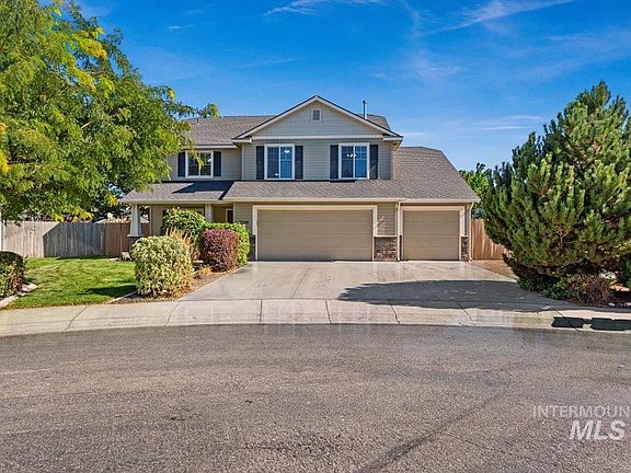 Located in a quiet culdesac and just a block away from the community pool and play area. The kitchen is spacious and offers an island and pantry. Combine that with the dual sided fireplace between the dining and living rooms and a oversized back patio with gas bbq stub and you have a wonderful layout for entertaining. The master suite has vaulted ceilings, walk-in closet, dual vanities and a soaker tub. 4 more bedrooms ensures everyone a space of their own. There's even a loft area that would make a great place for an office, playing games or studying. When the weather is great, the giant backyard beckons with volleyball, a firepit, and hot tub. The 4 car garage has several cabinets and peg board for organizing and offers extra storage in the RV parking area along the house. Settlers Park with splash pad, pickleball, tennis, and play area is just 1/2 mile away and The Village and Albertsons Marketplace within 4 miles. New carpet/water heat/HVAC