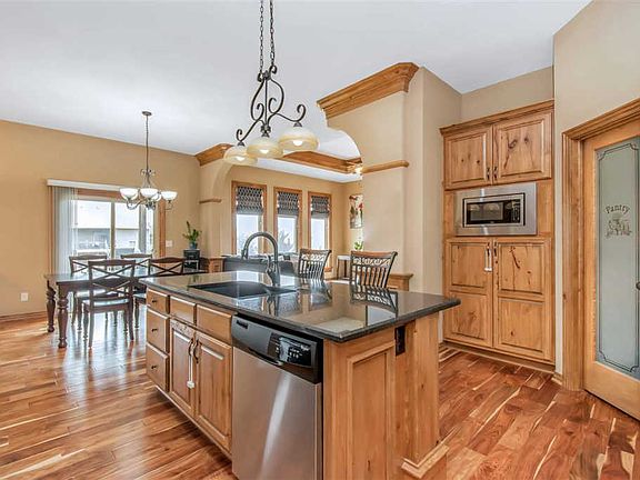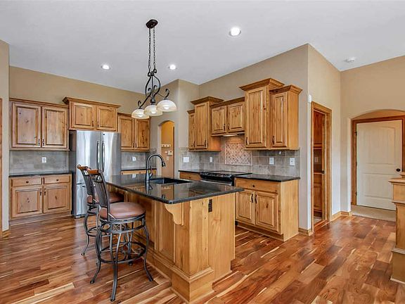Price Just REDUCED! Here is your chance to own this elegant open concept split bedroom custom built sensational âSmartâ home located on a large corner lot in a charming, quiet little cul-de-sac of the highly sought after community at Fox Ridge in the Maize School District and just a short walk for the kids to Maize South Schools. Inside this 5 bedroom, 3 bathroom sensation you will love the many upgraded finishes it has to offer. You have large windows throughput the house with gorgeous high end custom thermal blinds which allow for plenty of natural light when open, while also reducing thermal heat when closed. Upon entering your new home you cannot help but notice the striking dark trim and custom woodwork throughout or the 10ft tray ceilings and the main floor fireplace. Located just off the sitting room is the kitchen and dining featuring beautiful cabinetry, granite counter-tops, eating bar island, walk-in pantry, stainless appliances and the most beautiful hard wood floor you can imagine. On one side of your house is your master suite complete with a spacious bedroom, a roomy master bath that features a separate shower, jetted tub, independent double sinks and over-sized walk-in closet. On the other side of your home, to complete the main floor, is the laundry room, the ever useful built in storage bench for your grab and go items, kidsâ backpacks or coats, two more spacious bedrooms with vaulted ceilings and 2nd full bathroom. Did I mention this is a Smart home? Why yes it is, your new home is already equipped with WiFi connected Smart garage door openers, thermostat and front doorbell. It does not stop there, let us go downstairs where you have more welcoming space for family and entertaining complete with a full wet bar, gorgeous wood trimmed fireplace, a large family/ recreation room, 2 more bedrooms, the 3rd full bath and walk out access to your backyard. Outside you are going to love your East facing backyard, covered deck, and expansive fenced yard (a little bit under ½ acre) equipped with irrigation well and sprinkler system. Fox Ridge is a beautiful and sought after neighborhood in the Maize School District offering HOA managed lakes, community pool and playground, neighborhood walking paths, a short walk to Maize South schools all while being conveniently close to a YMCA, the Sedgwick County Zoo and park, and the ever popular New Market Square with many shopping options and restaurants.