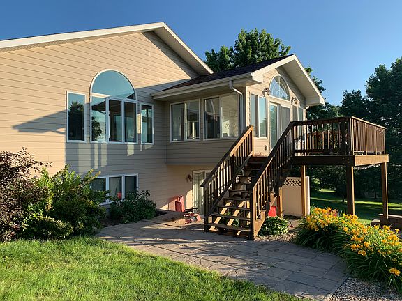Country home close to town with a panoramic view of the James River Valley located on 1.11 acre country lot. This 2,936 sq. ft. house includes 4 bedrooms, 2 and bathrooms. Main floor is completely remodeled with a massive 12' island. Finished basement with wood burning stove. Numerous anderson windows provide tons of natural light. Large walkout patio and deck to grill out, sit in your hot tub or watch the sunrise. Storage shed with additional cement pad for dog kennel/firewood storage. Extensive landscaping with lots of mature trees and various flowers. Outside city limits so taxes are very reasonable. Call or text to view. 605-999-4833