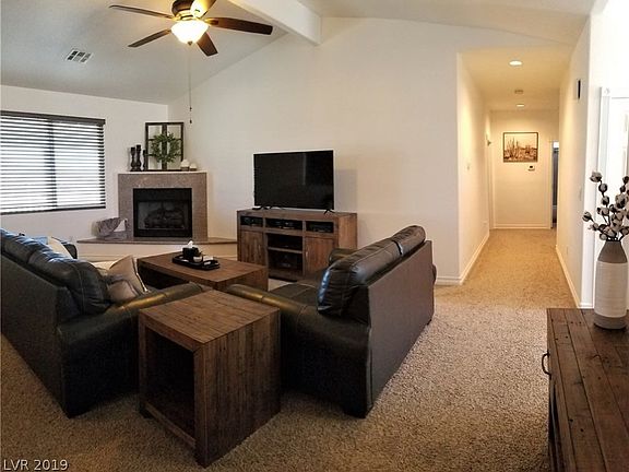 2017 home within private airstrip neighborhood. Bkfst rm overlooks Mt Charleston, living rm overlooks backyard & amaxing cv'd porch/patio. Bkyrd fenced w chainlink. Mstr bdrm has it's own door to patio. Closed circuit surveillance system, fridge, washer & dryer included. Tankless water heater...not instant, but endless hot water-heated via propane . Plenty of room for your own hangar. Taxi strip to the runway sits at the backside of property.