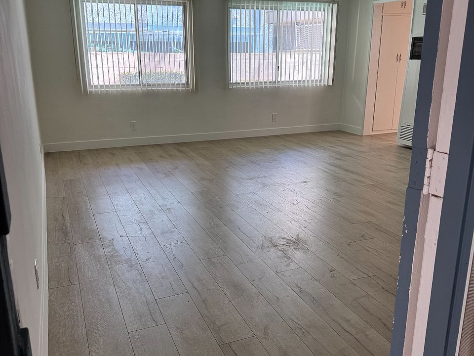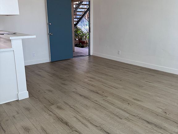 Newly remodeled one bedroom one bath lower unit. Laminate floors, multiple storage spaces. Great location, laundry on site, pool.