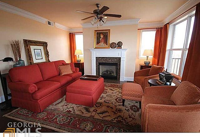 This luxurious end unit condo with high-end upgrades is tucked away in the exclusive downtown Roswell area. It features beautiful new hardwood floors, custom trim, a spacious chef's kitchen with granite countertops, custom cabinetry, breakfast bar & an impressive fan/hood. It also boasts a beautiful fireplace, custom lighting, a glorious master suite, covered parking, storage unit & a private balcony with soaring view of Vickery Creek and mill. Welcome home!