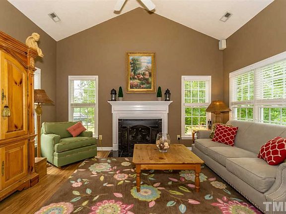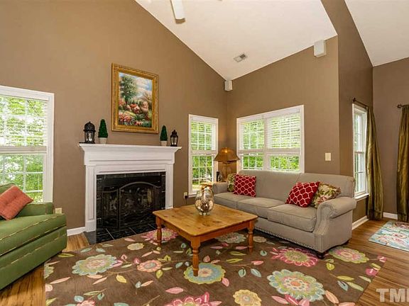 Four bedroom, master down beauty! Family room features soaring cathedral ceiling and fireplace, it's great for entertaining opens directly to dining room. Eat in kitchen with freshly painted cabinets, newer appliances, and free-standing island. Master ensuite has large walk-in closet, and separate soaking tub and shower with dual vanities. Large, flat lot with mature trees and landscaped yard on quiet street. Convenient NE Raleigh location, with easy access to 540.