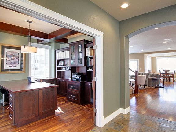 Custom Home located near Highline Canal, Golf Course, Shopping, and Rec Center! Your future home offers 5 bedrooms, 4 bathrooms, and main level offers formal Study with built-in cherry wood desk, formal Dining Room with Butler Pantry that leads to the Gourmet Kitchen. Kitchen features granite-slab countertops, stainless-steel appliances with double oven, gas range with downdraft vent, walk-in pantry, and large center island with additional seating x4. Kitchen shared open layout with Family Room. Slate-tiled entry and mudroom room welcomes you home at both the front and back entrances. Upper level has incredible Master Bedroom with sitting suite features dual-sided fireplace shared with spa-like bathroom and his/her walk-in closets. Entertain friends and family in the breathtaking finished basement, featuring custom reclaimed hardwood floors, Great Room, 2nd Master Suite, 5th bedroom, wet bar with mini kitchen (including dishwasher), and 500-bottle wine cellar!