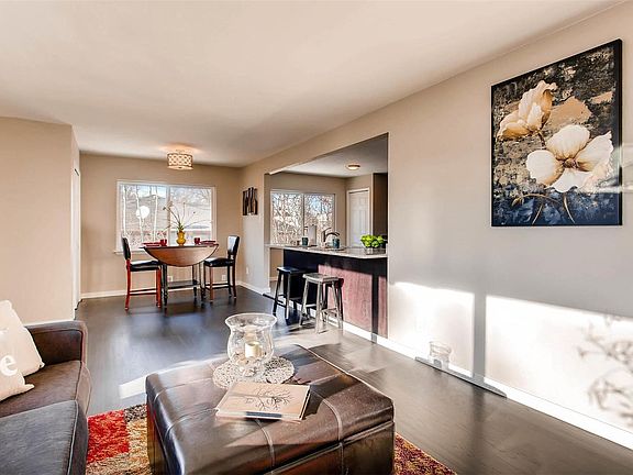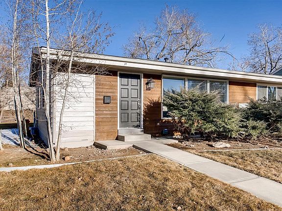 Ultra cute Mid-Century gem located in University Hills, one of Denvers beloved 50's neighborhood, with an eclectic mix of beautiful new properties and Mid-Century homes! Recently renovated, with a beautiful kitchen showcasing modern style cabinets, granite counter tops, stainless appliances, track lighting, edison lights, breakfast bar and beautiful hardwood floors throughout. The large open floor plan flows through providing lots of natural light with floor to ceiling wall of windows and a very nice flow. Dont forget about 3 bedrooms, a stuning full remodeled bath, tile flooring and stylish finishes. A second bath with beautiful tile floors, vanity and mirror, laundry area, open living room, dining area and eating space. A large yard with newer concrete patio add to the complete package of this cute property!