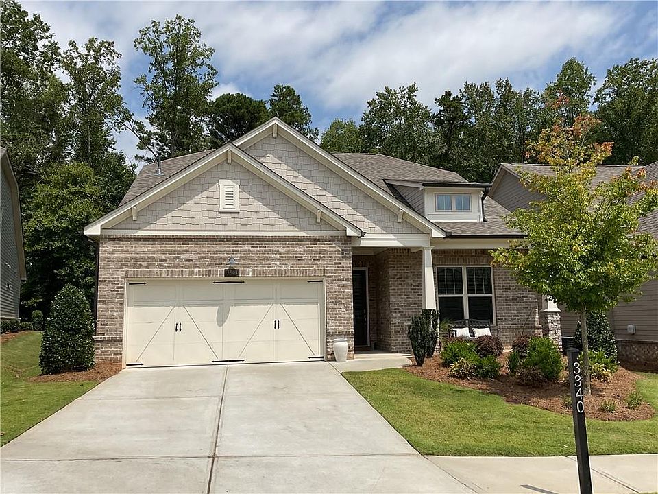 PRICE IMPROVEMENT!!! Welcome home to this stunning like-new home in a wonderful 55+ gated community. This beautiful open concept home with hardwoods throughout includes an amazing chefs kitchen with quartz countertops and an oversized island with breakfast bar. The kitchen is absolutely breathtaking with the tile backsplash, double wall oven, crown molding, a walk in pantry and a separate dining area. This home has so many wonderful upgrades to add to the luxury and style. The large entrance foyer and mud room add to the convenience and functionality of this home. The beautiful owners suite with tray ceiling offers a great place to relax. The master bathroom has separate his/hers vanity and large walk in shower. The master closet has plenty of shelving and space to hang clothes to make organizing simple. There are 2 additional bedrooms and a potential 4th bedroom that can be used as an office/home gym or so much more. The open living room features a fireplace with built in cabinets on both sides and recess lighting throughout. The large covered back patio is the perfect place for grilling and entertaining or just a great place to relax. This community has a beautiful swimming pool and clubhouse and is conveniently located just minutes from shopping/dining and only minutes to Ga400. This is a must see!!!