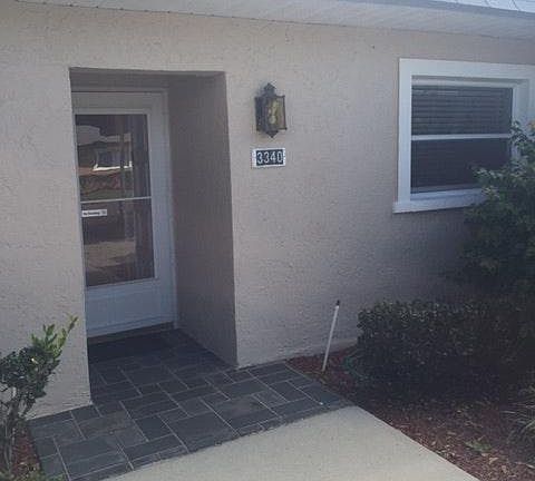 Perfectly located, scenic and secure 2 bedroom, 1 bath villa with new wood floors, new AC system, inside washer/dryer, upgraded bathroom, upgraded kitchen and LED lighting to save on energy costs. Unit is one level and steps from assigned, covered parking spot in carport. Unit has been upgraded and is very affordable with tenant only required to pay electric, plus new AC system that will save energy dollars. Included in rent is water, WIFI, expanded cable, trash and external maintenance so easy living and minimal costs. Villa sits inside Seven Springs Golf Course that is gated and guarded 24/7 in addition to being in Mitchell HS area. Minutes from Veterans Expressway, 1/2 mile from abundant shopping, restaurants and state of the art Trinity Medical Center. Enclosed porch area in addition to outside patio and grassy area where outdoor grilling is allowed. Water, basic cable and exterior maintenance is included. Tenant is responsible for electric.