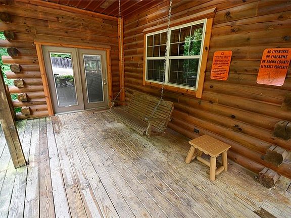 Welcome home to peace and serenity is this spectacular 5 bedroom/ 5.5 bath home. Beauty is both inside and out. A wooded backdrop greets you as you drive up in the circular drive. Expansive covered porch welcomes you home. Expansive island w/eat in area. Impressive kitchen. 2 story great room w/coffee bar/sink.Large ornate gas fireplace.Master ensuite with gas fireplace and hot tub directly attached. Luxury throughout as you simply rest and enjoy family and friends in the spacious rooms. This home comes completely furnished if the buyer wishes. You are 10 minutes from Nashville, Brown County Music Center and State Park.A quick drive to Bloomington. Come and see and you will soon call this home.