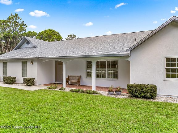 This precious home has been pampered by a single owner from the day it was built. Sitting on a prime acre and a half surrounded by Florida nature. Oversized bedrooms. ''Man-cave'' workshop behind the pool. Room for privacy, horses, and all your toys! Experience serene Brevard County living in this charming single-story, 4-bedroom, 2-bath home nestled on a generous Grant-Valkaria lot. With 2,147 sq ft of living space, a stucco exterior, and a 2022 shingle roof, this 1990-built residence blends comfort, privacy, and opportunity seamlessly. Enjoy a 2-car garage with an epoxy floor, a comprehensive water treatment system, and a layout designed for easy Florida living. Just minutes from the Indian River, beaches, parks, and equestrian areas, this location is ideal for boating, wildlife watching, and outdoor hobbies — and only 1 hour to Orlando. Inside, four spacious bedrooms and two full baths offer flexibility and comfort for families or guests: with the pool being the view from many rooms.