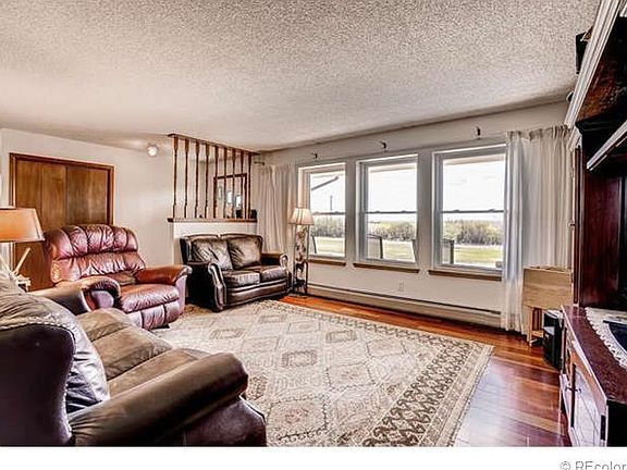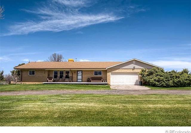 Wonderful ranch style home, 3 bedrooms, 3 baths, Open great room with Living room, Dining room & Kitchen with Breakfast Bar. Brazilian Cherry hardwood floors, Main Floor Laundry / Mud room, Fireplace with wood pellet stove insert, All Brick with Vinyl siding, Swamp Cooler, Stainless Steel appliances, gas stove, all appliances stay, Hot water heat, 35 acres with Views of Forever, 3 car attached garage, circular drive, sprinkler system in front & back yards, covered front porch, covered back deck, 4,000 sq ft barn with cement floors, 4 horse stalls with mats, Work bench with 120 & 220 outlets, Tack room, Large front & back sliding doors, 5 fully fenced pastures and 3 have electric outlets for heating water tanks, 2 grain storage bins, many extras, all measurements are approximate buyer to verify. Welcome Home to Quality and Care, This is a place you will be Proud to call Home.