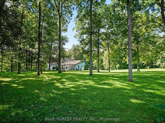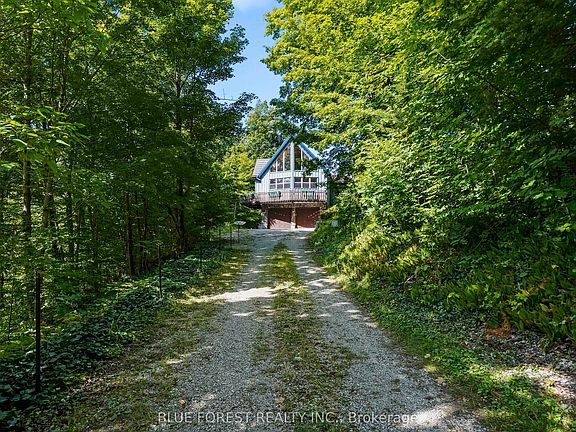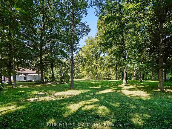 Timber frame Chalet on 93 Acres with Thames River Frontage! Incredible opportunity to own a custom Timber frame Chalet built by the founder of Pineridge Log and Timber frame. (Builders of Cow Bell Brewery in Blyth) Situated on 93 acres with 1000 feet of frontage on the Thames River, this picturesque property offers the perfect blend of natural beauty, privacy, and modern comfort just 3 minutes to Hwy 401 and 20 minutes to London. The home features 3 bedrooms, 2 bathrooms (Cheater Ensuite to Master), Fully finished Walk-Out basement and an attached 2-car garage, all set against a backdrop of 50 workable acres, hardwood forest, and a 1 km private walking trail. Premium features include a shake-style metal roof with a 75-year warranty (installed 2005) and Site sourced 3/4 ash hardwood flooring in the living and dining rooms. The gourmet kitchen includes a walk-in pantry and a dishwasher (2022), overlooking the terrace with a retractable Komoka awning (2020). Oversized 8' Pella patio doors, windows, and skylights fill the space with natural light. Stay cozy year-round with a wood stove as well as a heat-pump furnace with A/C (2023), multi-zoned solar-heated floors (kitchen, foyer, 2 baths, lower bedrooms, and hallway), and 2 owned water heaters. Additional highlights include 200-amp electrical service, exterior roll-up blinds on patio doors, Front and Rear decks, and Antique stained glass accents and fixtures, all in a home that combines energy efficiency with timeless craftsmanship. Whether you're looking for a peaceful retreat, productive farmland, or an outdoor lifestyle property with river access, this one-of-a-kind estate delivers.