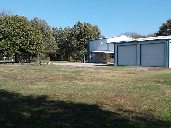 Metal home w/6 car garage and storage for RV/Boat near Ft. Gibson Lake. 10acres: 5acres w/house and 5 acres that is wooded w/creek running through. Located a few miles from the lake.