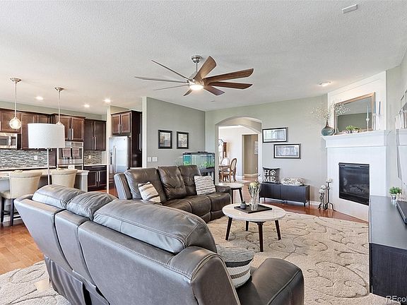 Highly sought after Hard to Find Ranch Style home with Amazing Panoramic Mountain & Lake Views sitting on a 1/2 Acre Lot, Beautifully Landscaped with no homes behind you, Backing to Open Space! This home has been Meticulously Cared for with Extensive Hardwood Floors throughout, Very Open Floorplan with Gourmet Kitchen with GE Profile SS Appliances with Gas Stove, Double Ovens, Huge Walkin Pantry, Granite Counters, Large Island Area Opens Up to Spacious Great Room with Gas F/P, Master Suite has it's own separate Sitting Area or Bonus Office Space, Large Walkin Closet, 5 Piece Bath to include Oversized Shower & Two Vanities with Fabulous Mountain Views from almost every room. Great for entertaining with the Covered Patio, Pergalo, and Outside Kitchen Setup with Gas Grill & Gas Firepit to sit and Enjoy The Views of the Mountains & Lake! This home has a Great Garage Setup All Finished 4 Cars Oversized Deep. Bring All your Toys as you may have RV, Camper, or Boat as long as you follow HOA guidelines. Quick Access to I-25! Pride of Ownership all the Way!