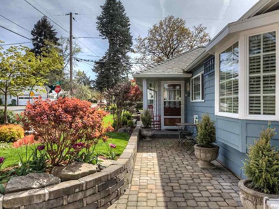 Accepted Offer with Contingencies. Impeccable home high on the hill boasts unique fit and finishes not to mention a perfect garden! Cherry cabinets in bedroom & bathrooms, granite counters, travertine floors in both bathrooms, slate floors in kitchen. Built ins & wet bar with granite top in living room along with gas fireplace. Deep double car garage with 2 story shop and storage space. Darling garden shed and peaceful patio space for entertaining.