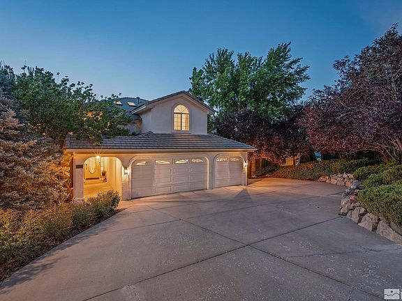 OPEN Sat 7/20 1-3. Lovingly maintained 4/5 bedroom (+ separate office), 4 full bathroom home in highly sought after and established SW Reno. Enjoy a 2021 remodeled kitchen along with 2020/2021 HVAC and hot water heater. Mature landscaping surrounds the home and the large 1/2 acre parcel provides backyard privacy and tranquil views. Zoned for three of Washoe County's best schools and close to downtown, midtown, the airport, and shopping, this home is truly picturesque and ideally located., The main level holds the beautifully updated kitchen, complete with leathered quartzite counters, Bosch, Thermador, and GE Profile built-in appliances, a cozy family room with a gas-log fireplace off the kitchen, a separate office with amazing built-ins (don't forget to look in the closet!), a full bathroom, the living/dining rooms with soaring ceilings, (with fantastic natural light), and finally the laundry room. The main level also has a private balcony for outdoor relaxing or entertaining while overlooking the magnificent mature trees and lush landscaping below (plus there are stairs for easy access the backyard). Upstairs you'll find all new carpet, the primary en-suite (with a tub that's perfect for a cold plunge), two additional bedrooms, and a full bathroom. Downstairs, is a walkout basement with an enormous family room, all new LVP flooring, another bedroom and full bathroom, a quaint bonus room that is currently set up as an overflow bedroom, and massive walk-in storage with easy access to the newer mechanical systems. This home is priced to sell and ready for a new owner to call SW Reno "home."