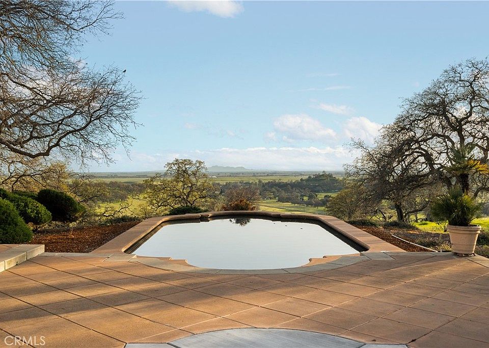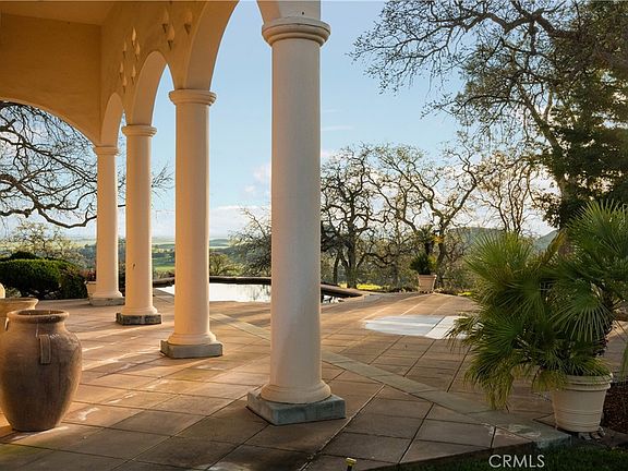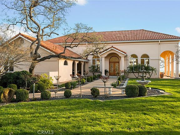 Welcome to this enchanting Mediterranean-style oasis perched atop a butte in Butte Valley, offering panoramic 360-degree views that will leave you breathless. Designed by the renowned Bob Hill, this 3-bedroom, 2.5-bath masterpiece is a captivating blend of elegance and comfort. As you approach, a delightful walking path with fragrant roses guides you to the tall double doors, granting entry to a world of sophistication. The grandeur unfolds in the large living room, where a wood-burning fireplace takes center stage beneath 28 foot ceilings. Tall windows frame the picturesque scenery, and French doors beckon you to step onto multiple patios, where the beauty of the outdoors seamlessly blends with the indoors. The formal dining room, with its spacious design, invites you to host memorable gatherings. Cherry wood floors grace the kitchen and dining area, setting the stage for culinary delights. The expansive kitchen features granite counters, a convenient island with an electric cooktop, cherry wood cabinets, and an eating nook. A large sink overlooks more views, bringing the outside charm in. Step into the primary suite, where a gas dual-sided fireplace adds warmth and ambiance. The bedroom opens to a private patio with awe-inspiring views. The ensuite bathroom boasts dual vanity sinks, a jetted soaking tub, a step-in shower, and a large walk-in closet. A spiral staircase leads to two generously sized guest bedrooms, complete with abundant closet space and sliding doors, providing direct access to more scenery. The guest bath features dual sinks and a step-in shower, ensuring comfort and convenience. Outside, the expansive 20 acres reveal a stunning Bob Hill pool overlooking Butte Valley, and your private view of the Sutter Buttes. Ample patio space provides the perfect setting for entertaining or simply enjoying the breathtaking scenery. Need space for storage? Check out the 4 car garage! The owned 48 solar panels discreetly placed on the property ensure both convenience and sustainability. There is even a Generac generator that supports the entire house should power go off. Indulge in the serenity and luxury of this Mediterranean-style haven, where every detail speaks of craftsmanship and timeless beauty. Welcome home to a lifestyle of elegance and tranquility.