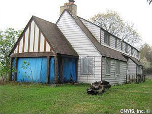 What an equity building opportunity for the handy buyer! In need of refurbishing and updating inside and out to restore this home to its original charisma and charm. This 2473 sq ft 3 bedroom, 2.5 bath unique cape style is high up on a knockout 2.1 acre 435 ft deep treed parcel with water & gas. Features living room with FPL, formal dining room, kitchen with dining area, hardwoods thruout, side screened porch. Marcellus schools, close to major shopping. Could again be one of the gracious homes in the area.