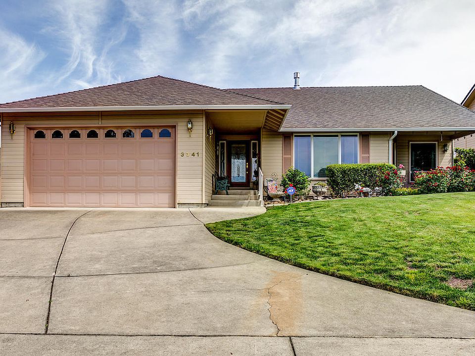 Unobstructed Mountain Views and Centennial Golf Course Views*Detached Finished Shop*Oversized 2-Car Finished Garage*Single Level*Immaculate Condition! Cute, Cute, Cute! You won't want to miss this Larson Creek Estates Beauty with gorgeous landscaping. Separate living room and family room, 3 sided gas fireplace, gorgeous newly installed real hardwood flooring, vaulted ceilings, large bedrooms, oversized front driveway with RV parking. The house is light and bright inside with lots of natural light. Forced heat & air, large covered front & back patios make it perfect for outdoor fun as well. Beautifully landscaped front and back yards with times sprinklers. Don't miss this fantastic home!
