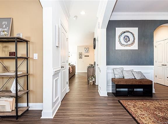 This Move in ready and very well maintain Charleston charmer is a must see. Enter through your covered front porch into an open floor plan. This home has a large living room/office, family room, dining & kitchen on main level. Details like the archways, wainscoting, trim work and high ceilings make this home extra special. The kitchen includes a large sitting bar, 42" cabinets, granite, tile backsplash and stainless steel appliances with gas range. Perfect for entertaining with kitchen open to family room and dining room area. Vinyl plank on the main floor. The owner's suite has a tray ceiling, large walk-in closet and an owner's bathroom with an extra large shower. Luxurious bathroom has upgraded lighting, granite dual sinks and extra counter and cabinet space. Two spacious guest room are upstairs as well as the laundry and a huge room that can be used as a game room or fourth bedroom. Rear load garage. Community has pool, sidewalks and street lights - Great schools ad great location