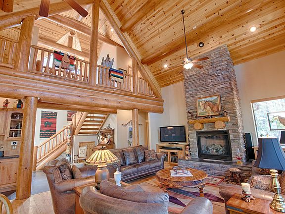 Oversized Logs create this Home with wonderful landscaping to compliment the mountain feel. Enter the custom screen & wood door to a view of large windows bringing the outdoors in. Great Rm provides space for living & study area. Hickory floors compliments the slate tile. Dining and Kitchen w/breakfast bar seat many people also walk out the sliding door to wonderful outdoor entertaining space. Upstairs w/split bedroom layout and 1 full bath w/custom sink , tile & cabinets. Master Down with sliding door to sitting area, walk in closet, bath has specific features as a ''master'' should have. Past year many improvements: new carpet, freshly stained decks & exterior, new built in cabinets, new landscaping - pavers, trees, ground cover.