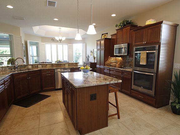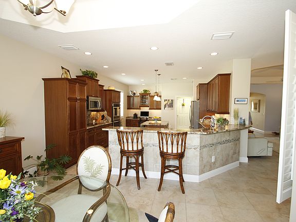 Brownwood – The New Center of The Villages Beautifully high-end appointed and expanded designer Boxwood model in the desirable Village of Collier, located on a quiet cul-de-sac near Evans Prairie CC and minutes from the Brownwood Square. Like new, occupied for only 3 years, with over 2500 sq. ft including a beautiful Florida room-built by T&D Construction, with a ceiling mounted mini split and a 55” Samsung TV and Sound bar. Beautiful large kitchen, double oven and stainless-steel appliances, luxurious cabinets with pullout shelves and under cabinet lighting! Hunter-Douglas plantation shutters throughout, granite counter tops in kitchen and bathrooms with efficient closet organizers. Tile floors, recessed lighting, 2 car expanded garage with small workshop and innovative storage cabinets! Energy efficient radiant heat barrier, insulated garage door, and a Versalift attic lift system for ease of attic storage. A must see! Great quite neighborhood. Ready to move in condition! For appointments please call – 847-372-2531