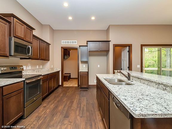 New 2751 SF walkout ranch in established family neighborhood of Brook Run Village. The 3 car garage opens to a mud room with tile floor, D hookups, lockers & sink. The kitchen, family room & dining area all have 10' ceilings. The open kitchen has a large walk-in pantry the family cook will love. A 16'x9' dining area opens to a partially covered deck. Family room with direct vent gas fireplace completes this spacious, functional family living area. A master suite with cove ceiling, bath with double vanities, full tile shower and huge walk-in closet is the perfect retreat. Two more bedrooms with walk-in closets complete this level. Lower level includes rec room, additional bedroom and full bath. 6 year incremental tax abatement, SE Polk Schools and close to all Des Moines has to offer.
