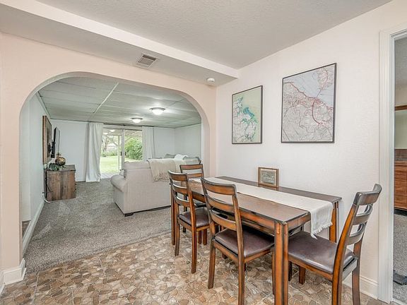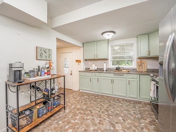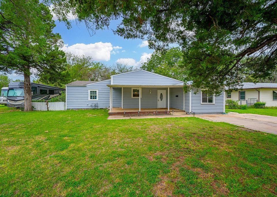Explore this expansive three-bedroom, two-bathroom residence situated on an ample 0.4-acre plot of land! With its thoughtfully designed layout, the primary bedroom is generously sized and thoughtfully separated from the other bedrooms to ensure privacy. The flowing open floor plan renders this home exceptionally suited for hosting gatherings. The kitchen is furnished with an abundance of cabinet space for storage and is fully equipped with all essential appliances. Beyond the kitchen, you'll discover two additional sizable bedrooms, a hallway bathroom, and an extra bathroom that also houses the laundry facilities and ample storage. Stepping outside, you'll encounter a covered deck, multiple auxiliary buildings, and a storm shelter. Seize this opportunity—arrange your viewing appointment without delay!