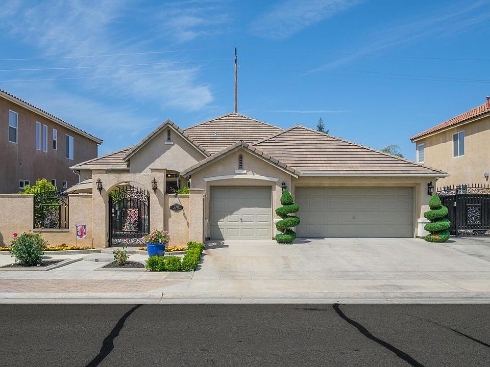 Clovis luxury is calling you home! This stunning Mediterranean home encompasses oasis living with a full entertainment courtyard, breathtaking landscape and inspiring curb appeal! The beautiful courtyard leads to the stunning home boasting 4 bedrooms (one with a closet right outside its door) PLUS an office/den, 2.5 bathrooms, a 3-car garage, with open concept living and modern upgrades inside and out! The backyard has been custom designed to be low maintenance with beautifully designed concrete and the side yard has a large, RV / boat parking space adorned with a gorgeous wrought iron gate! Whether you are looking for a home to entertain or just relax in, this is IT!