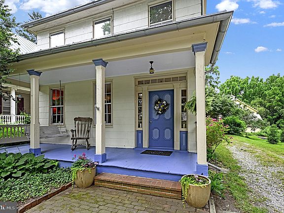 Live in the heart of the historic village of Uniontown, an enclave of 77 houses surrounded by agricultural preserve land, and enjoy the best backyard views in town! This home is a true combination of history and modern amenities. The covered front porch leads into gracious rooms with tall windows and hardwood floors. Central AC, a high-end water filtration system, and newly renovated kitchen and baths make for easy living in a home replete with nineteenth century character. The kitchen, with quartz counters, stainless steel appliances, custom crafted wood beams and a breakfast area, opens onto a large Trex deck and perennial gardens. The first floor bath off the living room could become a bedroom suite for guests or owners if desired. Upstairs you will find three generously sized bedrooms, two more full baths with custom made wood vanities, and a laundry area accessible to all three bedrooms. A full footprint basement and attic provide lots of room for storage. Outbuildings include a climate-controlled workshop/studio which has electricity and many potential uses, and an architecturally detailed two-story carriage house/barn featuring expansive space with cathedral ceilings. It makes a great party or movie night space! The deep, private yard ends with a stunning view of rolling countryside, backing up to agricultural preserve. Close to Westminster and Gettysburg; commuting distance to Baltimore and DC.