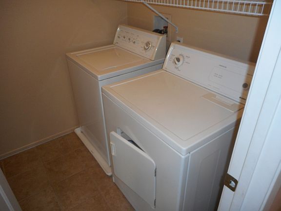Turn key light and airy one level above 2 car garage townhome. Neutral tile, carpet, paint. Upgraded appliances. Balcony and separate laundry room with washer and dryer included. Lovely common area with pool and children's play ground. Security gated community. Clean, clean, clean and ready for easy move in!